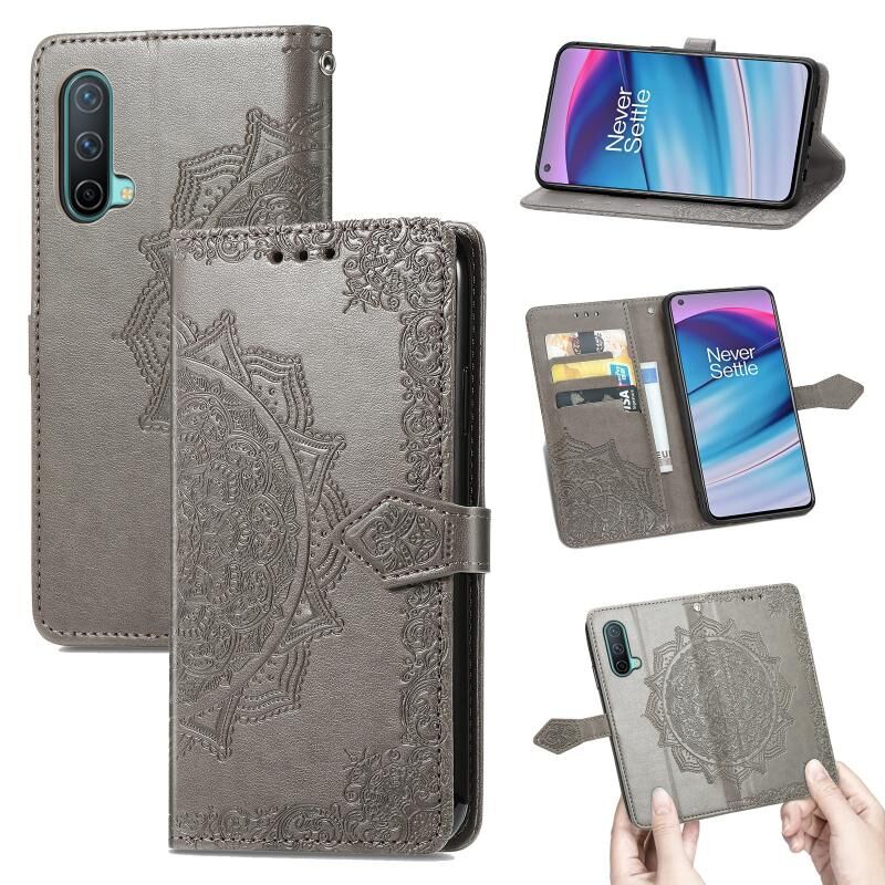 Για OnePlus Nord CE 5G Mandala λουλούδι ανάγλυφο οριζόντια Flip δερμάτινη θήκη με κάτοχο & τρεις υποδοχές για κάρτες & πορτοφόλι & κορδόνι (γκρι)