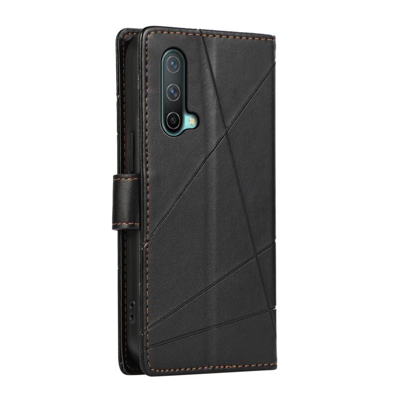 Θήκη τηλεφώνου OnePlus Nord CE 5G από γνήσιο δέρμα PU με ανάγλυφη υφή και λεπτομέρειες γραμμής (Μπλε)