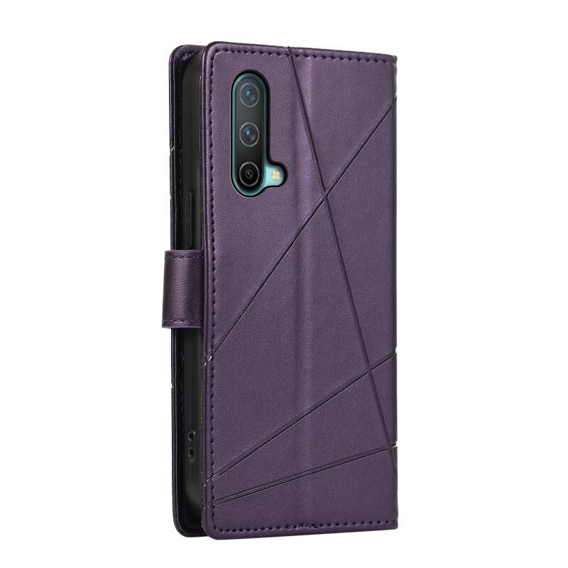 Θήκη τηλεφώνου OnePlus Nord CE 5G από γνήσιο δέρμα PU με ανάγλυφη υφή και λεπτομέρειες γραμμής (Μπλε)
