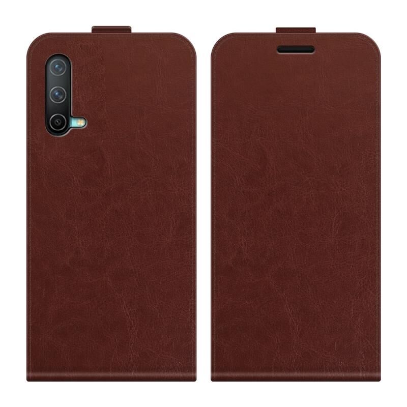 Θήκη προστασίας δέρματος με κάθετη αναδίπλωση για OnePlus Nord CE 5G R64 με υφή, με θήκες για κάρτες & κορνίζα φωτογραφιών (Κόκκινο)