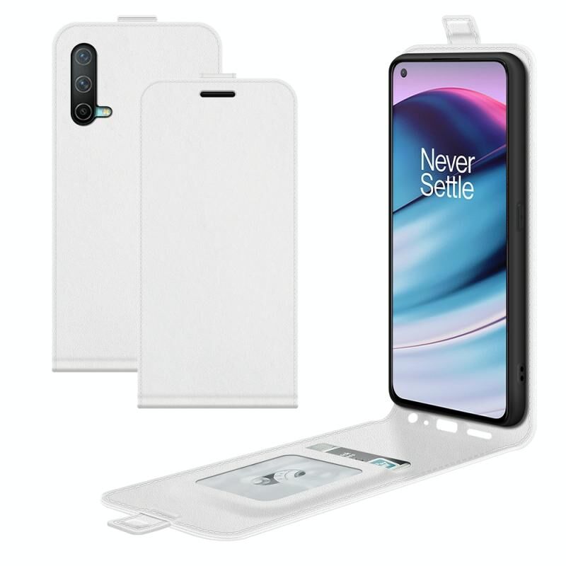 Για OnePlus Nord CE 5G R64 Υφή ενιαία κάθετη Flip δέρμα προστατευτική θήκη με υποδοχές για κάρτες & πλαίσιο φωτογραφιών (λευκό)