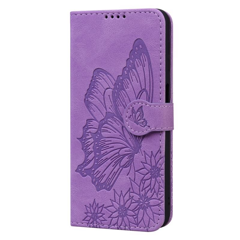 Θήκη δέρματος οριζόντιας αναδίπλωσης για OnePlus Nord CE 5G με υφή retro, ανάγλυφα σχέδια πεταλούδων, βάση στήριξης & θήκες για κάρτες & πορτοφόλι (Κόκκινο)