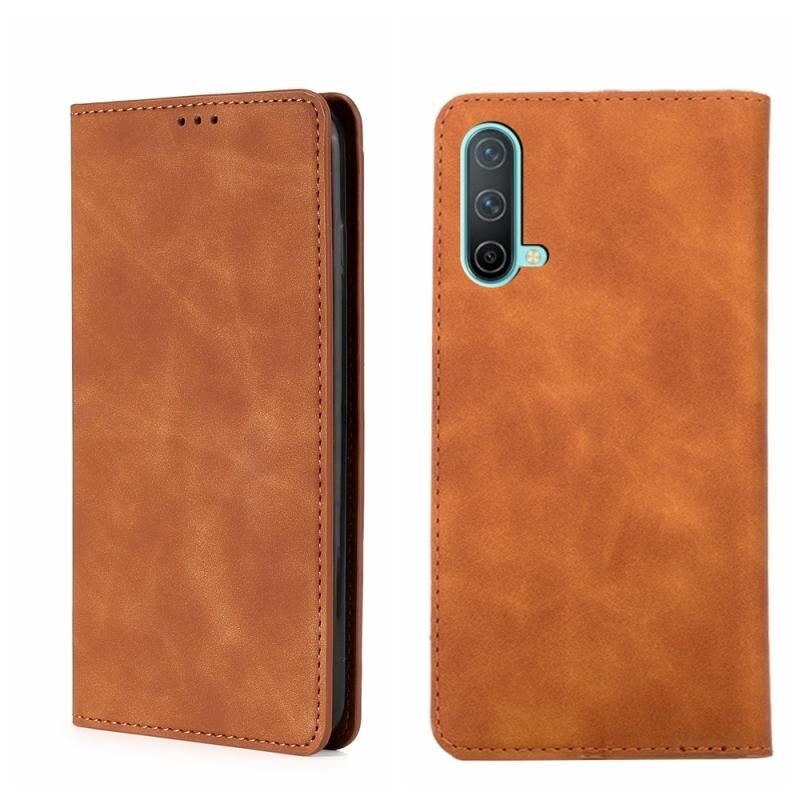 Για OnePlus Nord CE 5G δέρμα αίσθηση μαγνητική οριζόντια Flip δέρμα τηλέφωνο υπόθεση (ανοιχτό καφέ)