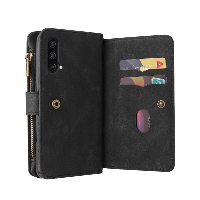 Για OnePlus Nord CE 5G δέρμα αίσθηση PU + TPU οριζόντια Flip δερμάτινη θήκη με κάτοχο & 15 κάρτες Slot & πορτοφόλι & φερμουάρ τσέπη & Lanyard (μαύρο)