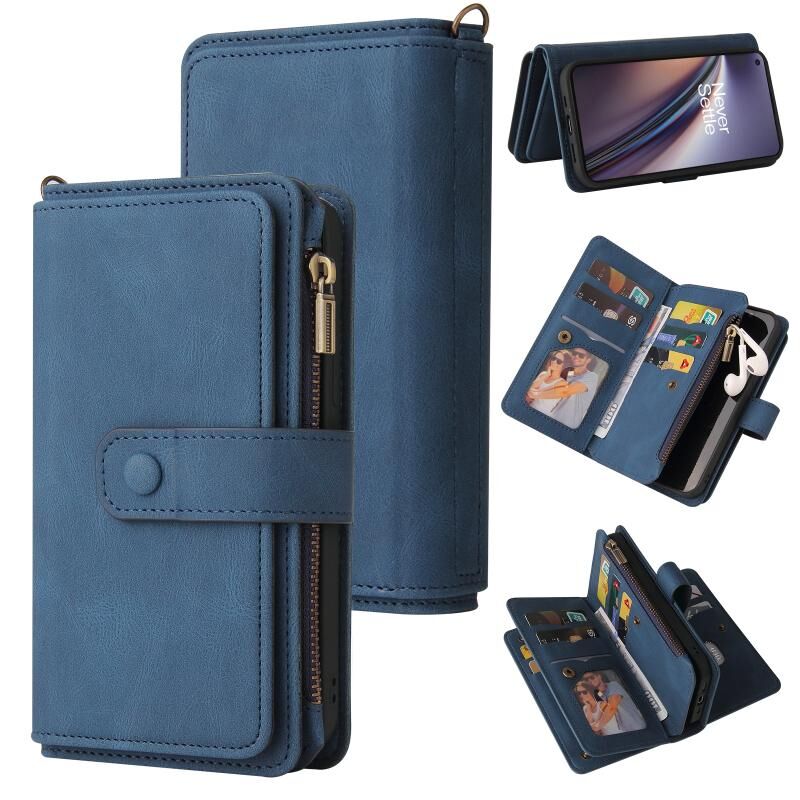 Για OnePlus Nord CE 5G δέρμα αίσθηση PU + TPU οριζόντια Flip δερμάτινη θήκη με κάτοχο & 15 κάρτες Slot & πορτοφόλι & φερμουάρ τσέπη & κορδόνι (μπλε)