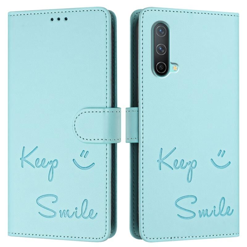 Για OnePlus Nord CE 5G Χαμόγελο ανάγλυφο RFID δερμάτινη θήκη τηλεφώνου (πράσινο χρώμα)