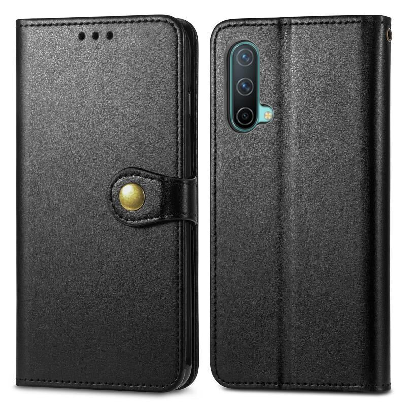 Για OnePlus Nord CE 5G Αμιγές χρώμα δερμάτινη θήκη τηλεφώνου πόρπη με κορδόνι & πλαίσιο φωτογραφιών & υποδοχή κάρτας & πορτοφόλι & λειτουργία Stand (Μαύρο)