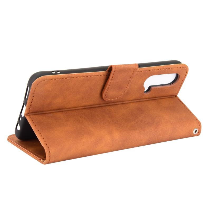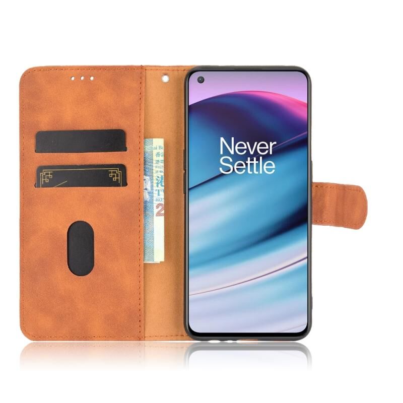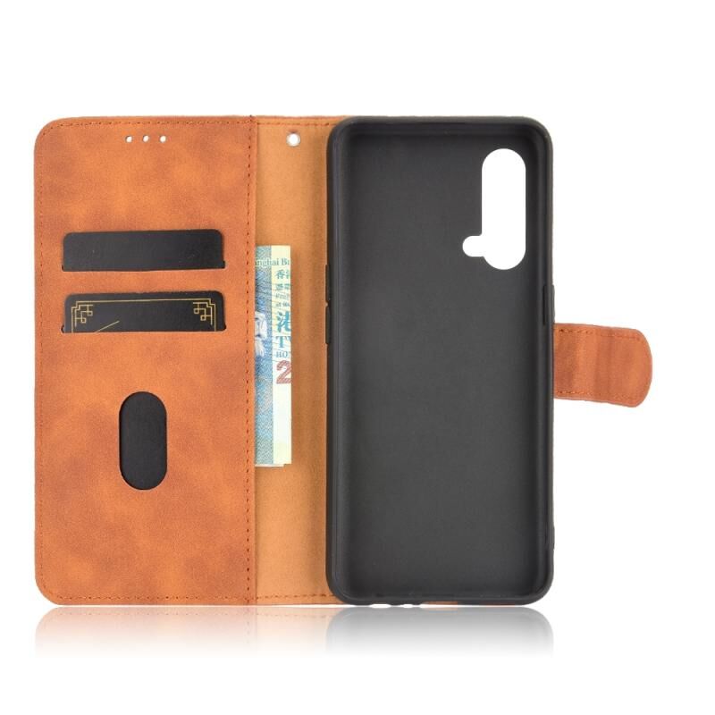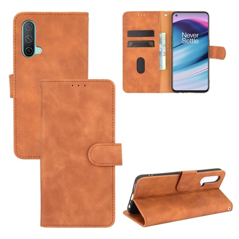 For OnePlus Nord CE 5G Solid Color Skin Feel Magnetic Buckle Horizontal Flip Calf Texture PU Leather Case with Holder & Card Slots & Wallet(Brown)