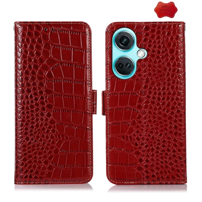 Θήκη τηλεφώνου από γνήσιο δέρμα αγελάδας με επένδυση κροκόδειλου για OnePlus Nord CE3 5G (Καφέ)