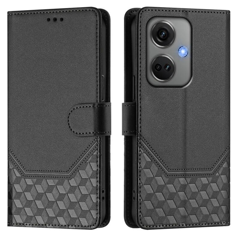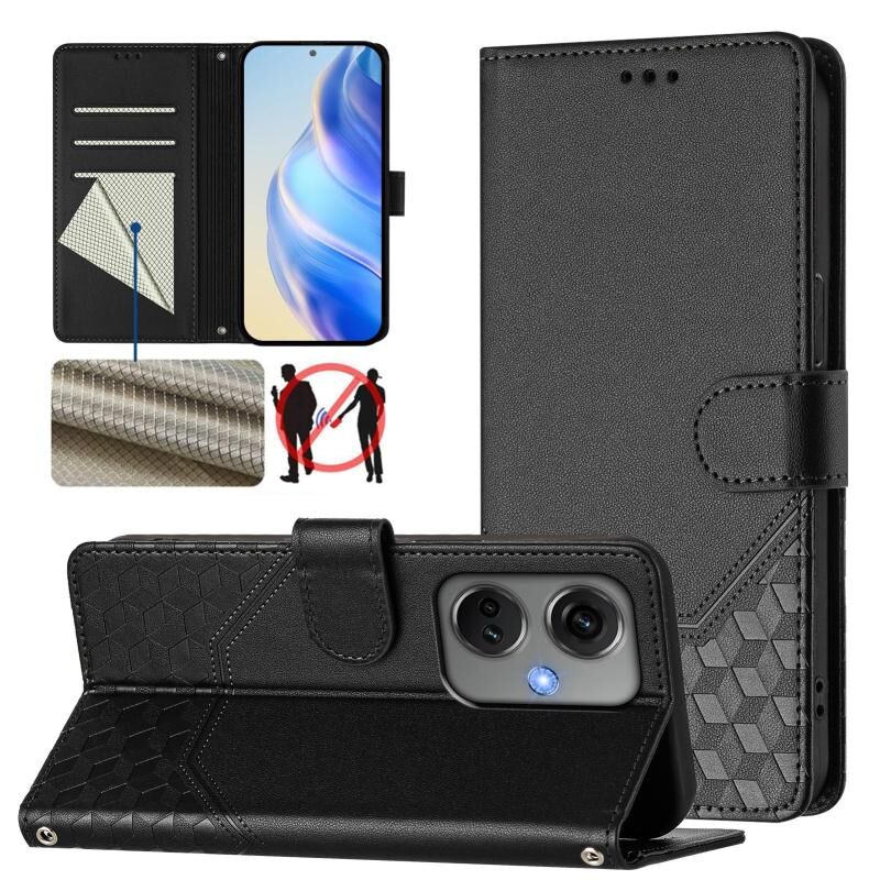 Για OnePlus Nord CE3 5G Ινδία κηρήθρα ανάγλυφη RFID δέρμα τηλέφωνο υπόθεση (Μαύρο)