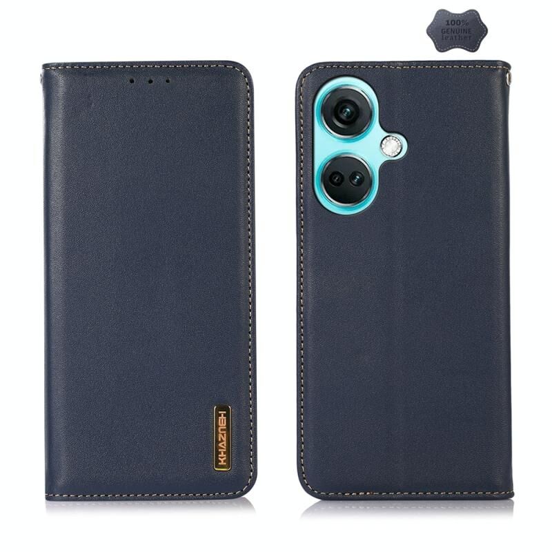 Θήκη τηλεφώνου από γνήσιο δέρμα αγελάδας Nappa Top Layer KHAZNEH για OnePlus Nord CE3 5G (Μπλε)