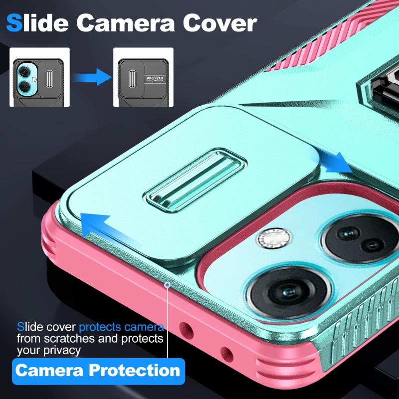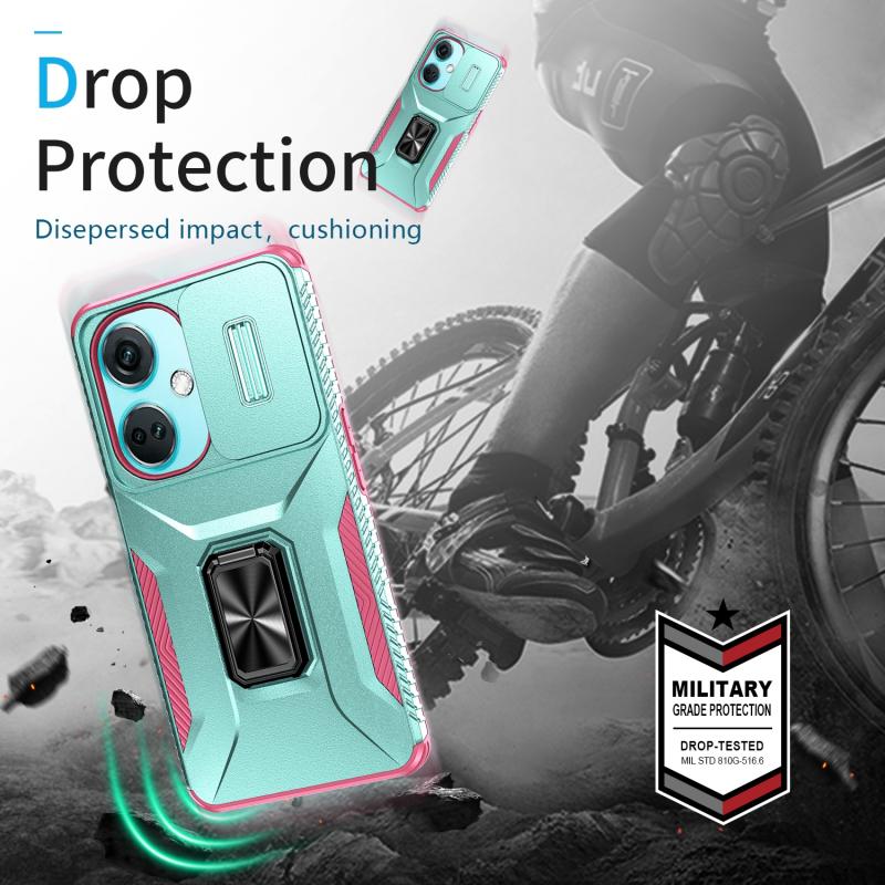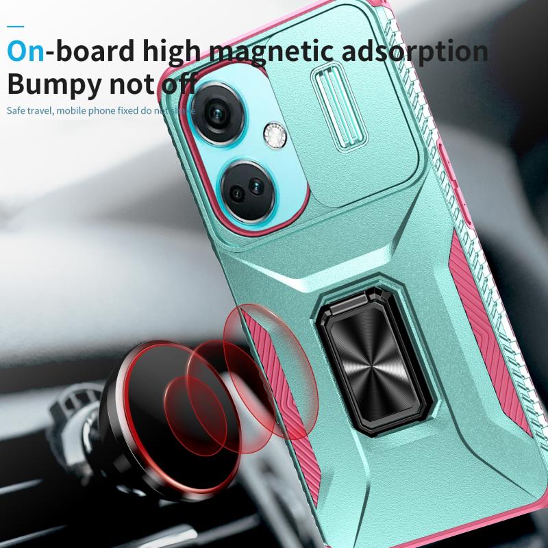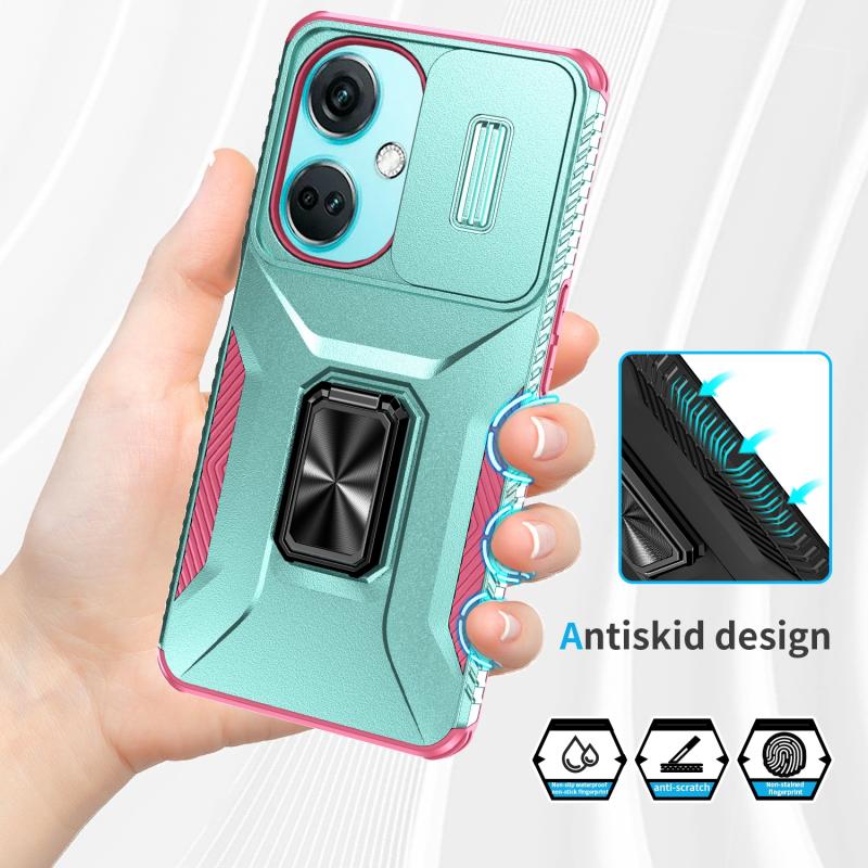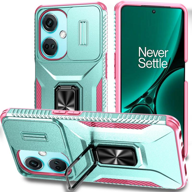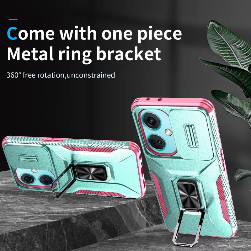 For OnePlus Nord CE3 5G Sliding Camshield Holder Phone Case(Grey Green + Pink)