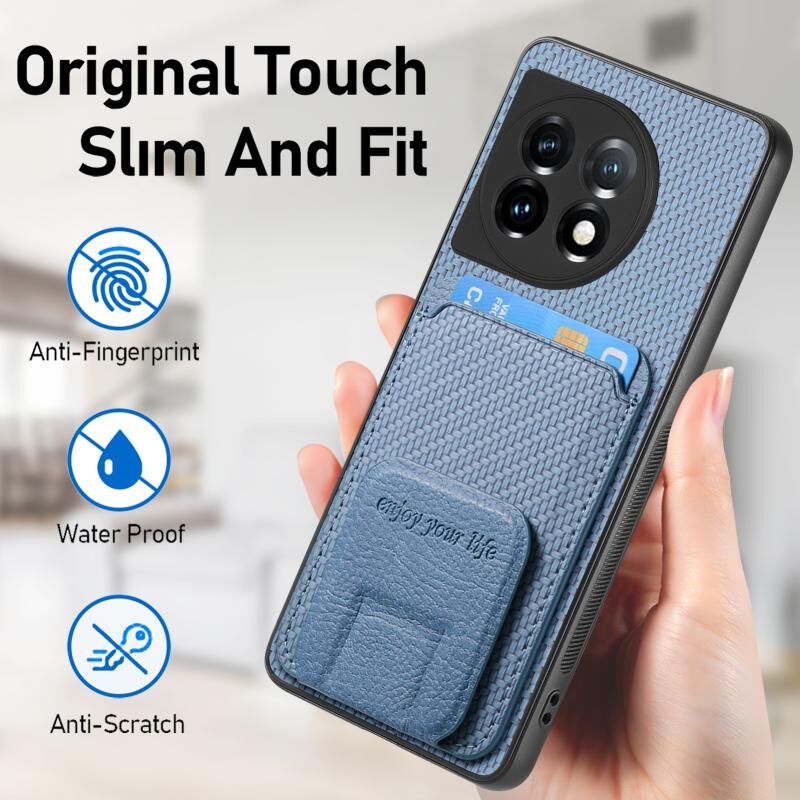 For OnePlus Nord CE3 Carbon Fiber Card Bag Fold Stand Phone Case(Blue)