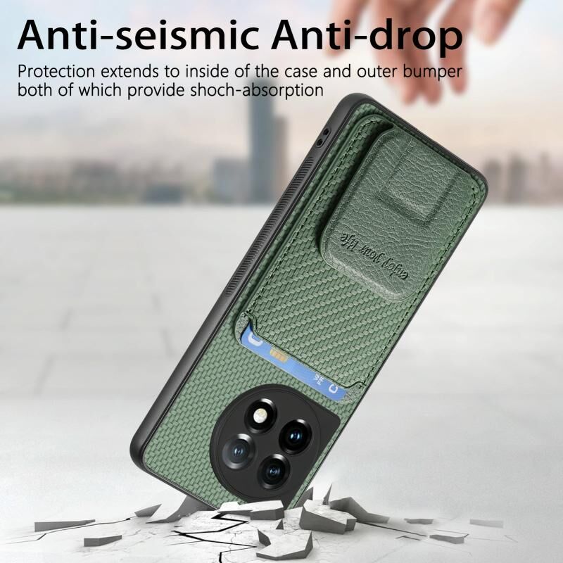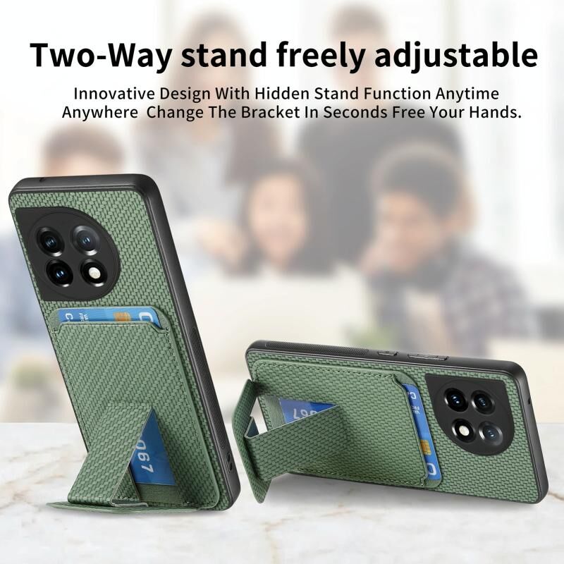 For OnePlus Nord CE3 Carbon Fiber Card Bag Fold Stand Phone Case(Green)