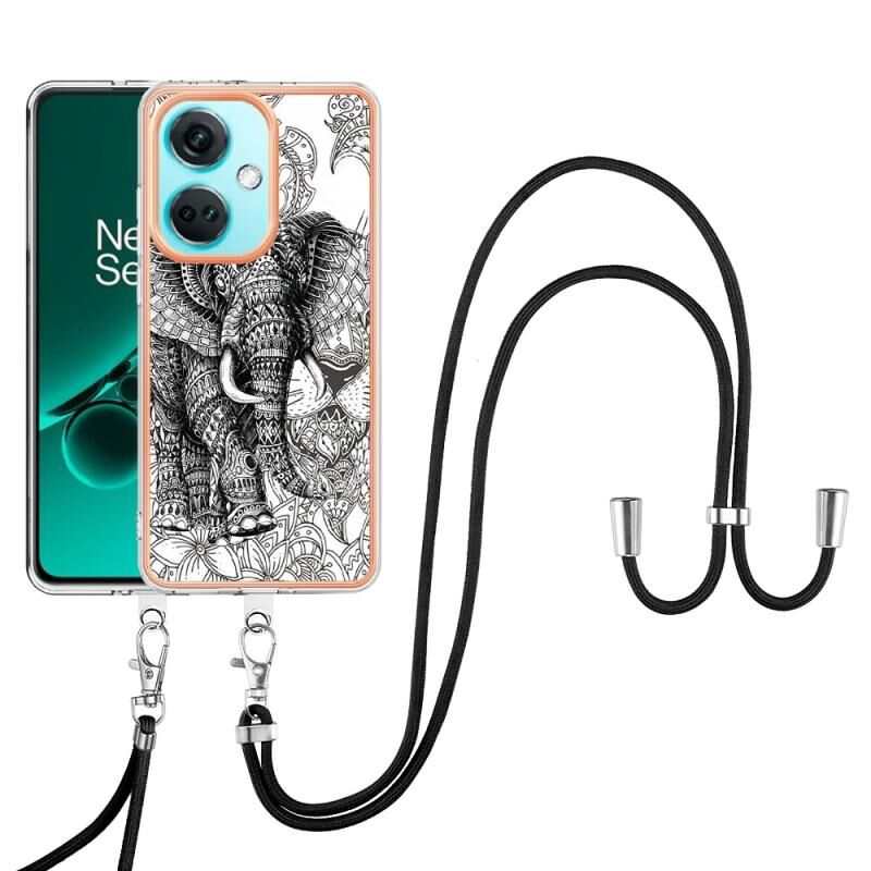 For OnePlus Nord CE3 Electroplating Dual-side IMD Phone Case with Lanyard(Totem Elephant)