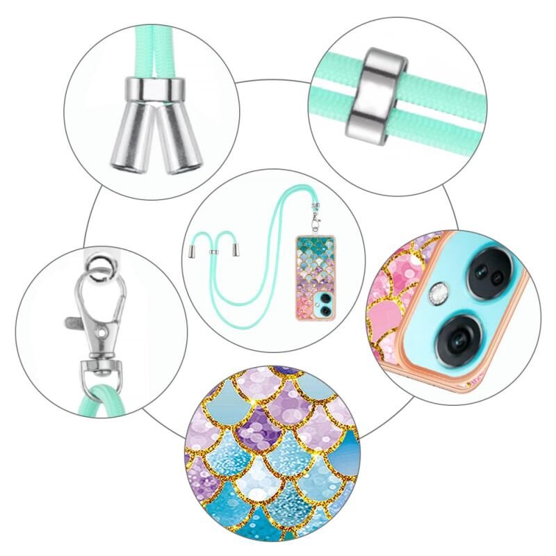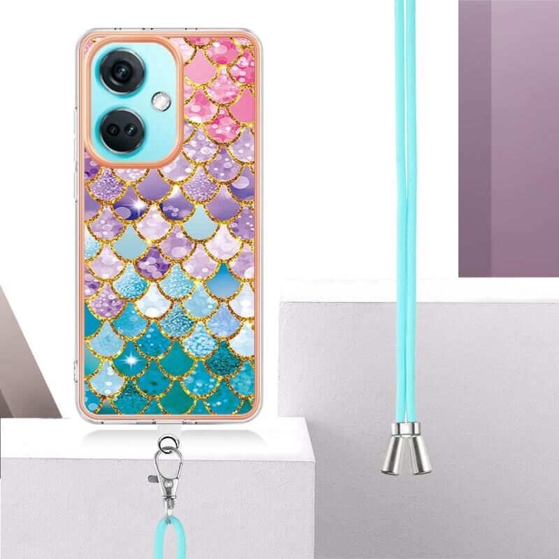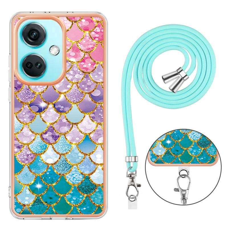 For OnePlus Nord CE3 Electroplating IMD TPU Phone Case with Lanyard(Colorful Scales)