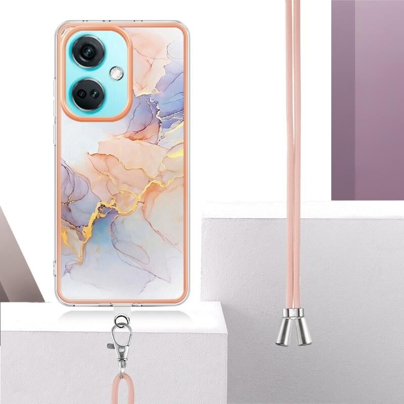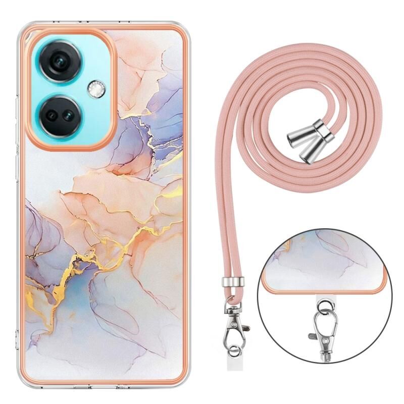 For OnePlus Nord CE3 Electroplating IMD TPU Phone Case with Lanyard(White Marble)
