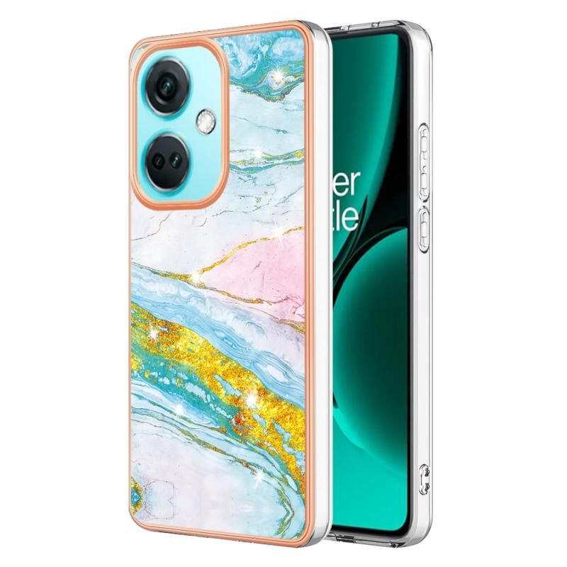 Θήκη τηλεφώνου OnePlus Nord CE3 Electroplating Marble IMD διπλής όψης (Green 004)