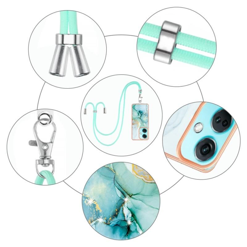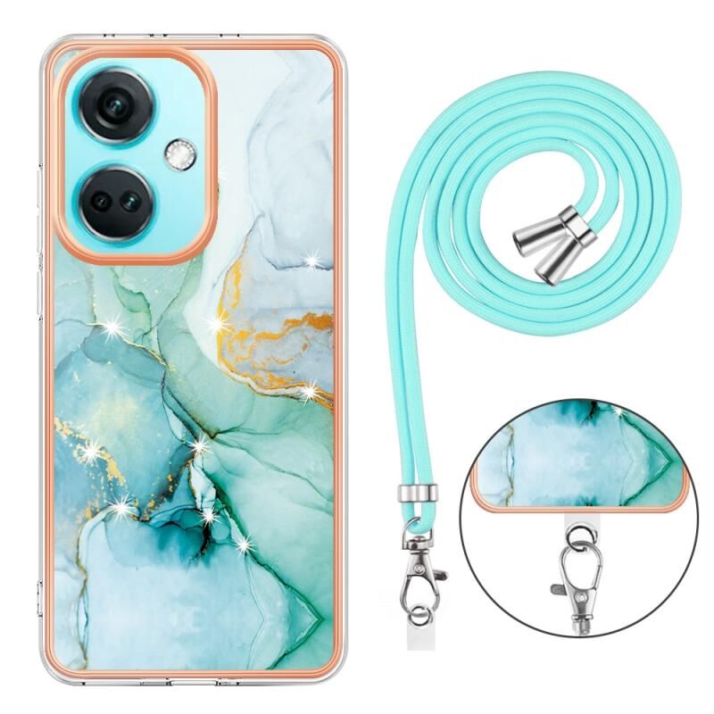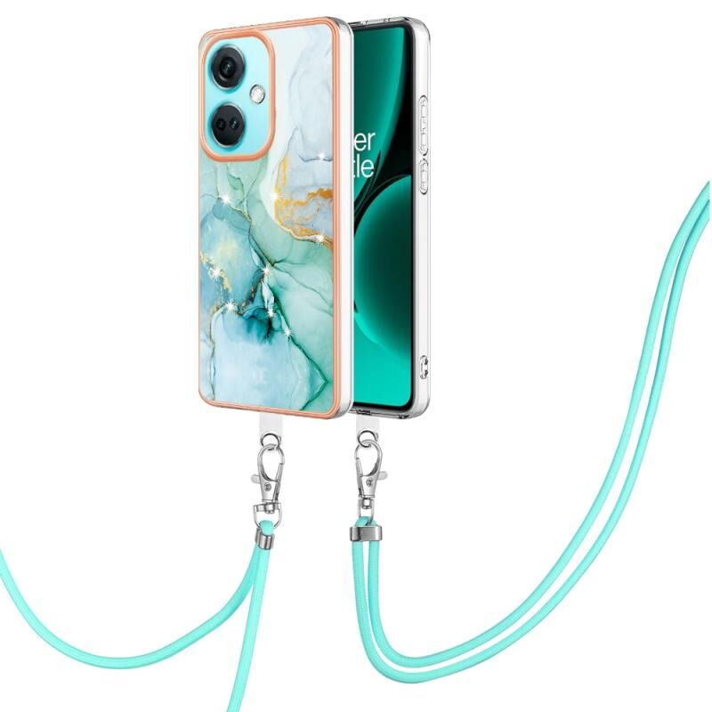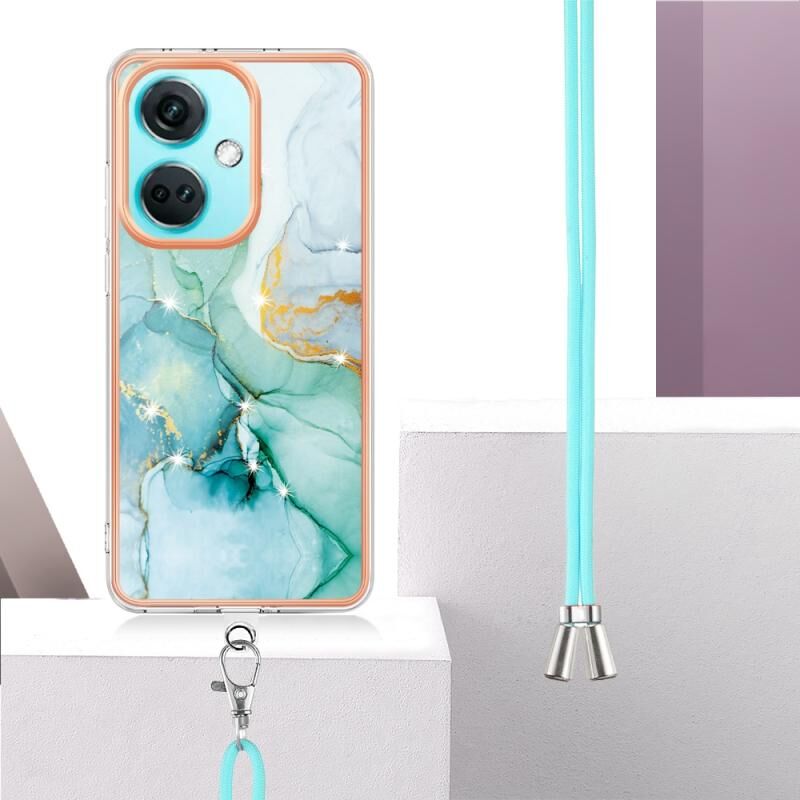 Θήκη τηλεφώνου OnePlus Nord CE3 Electroplating Marble IMD διπλής όψης με κορδόνι (Μωβ 002)