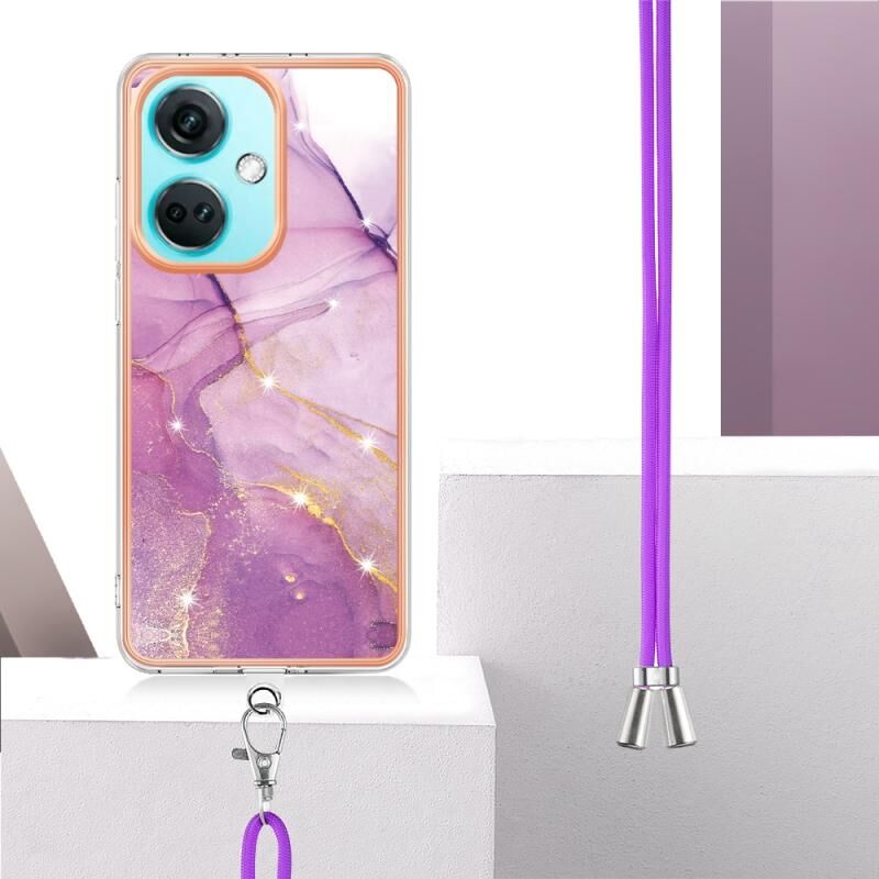Θήκη τηλεφώνου OnePlus Nord CE3 Electroplating Marble IMD διπλής όψης με κορδόνι (Μωβ 001)