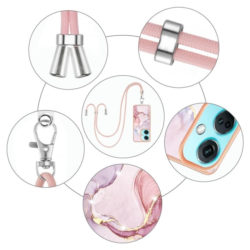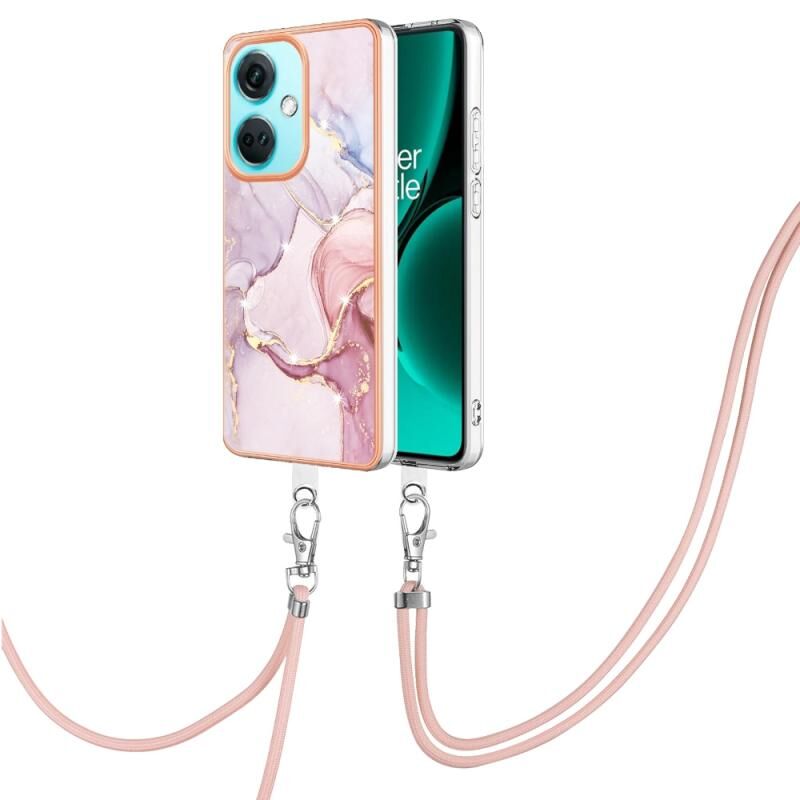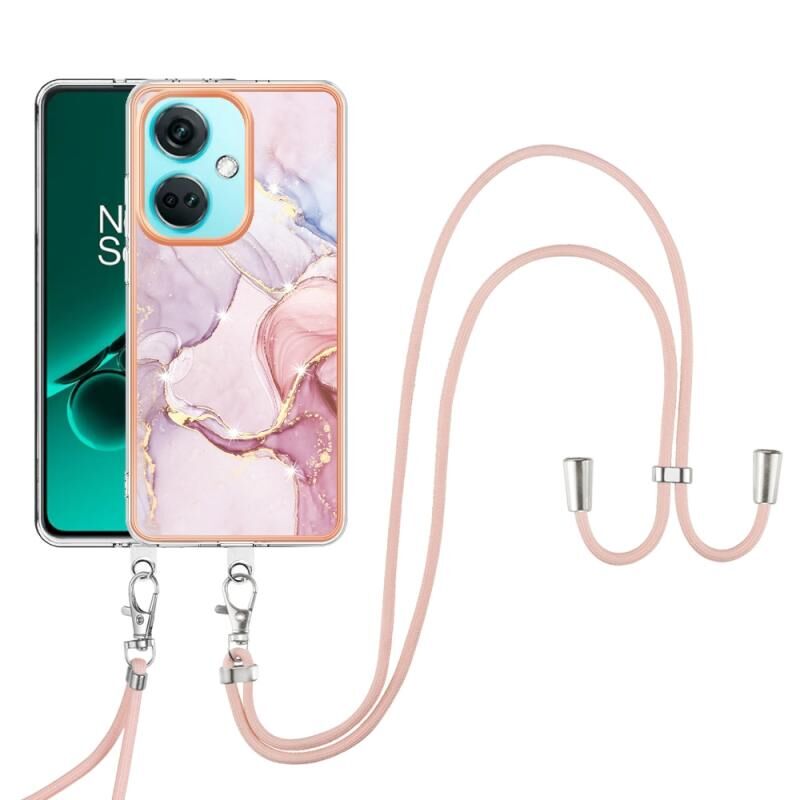 For OnePlus Nord CE3 Electroplating Marble Dual-side IMD Phone Case with Lanyard(Rose Gold 005)
