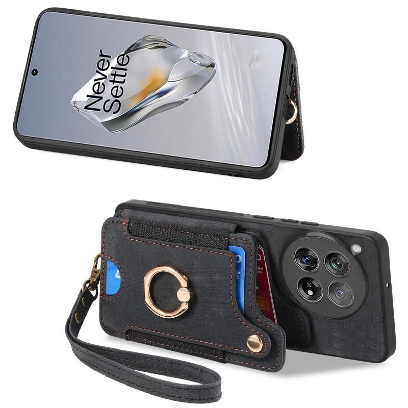 Για OnePlus Nord CE3 Lite Ρετρό δέρμα αίσθηση δαχτυλίδι πολυ-κάρτα RFID πορτοφόλι υπόθεση τηλεφώνου (Μαύρο)