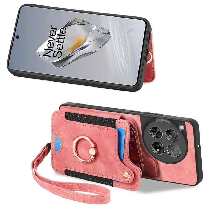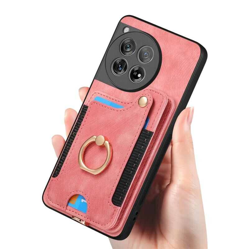 Για OnePlus Nord CE3 Lite Ρετρό δέρμα αίσθηση δαχτυλίδι πολυ-κάρτα RFID πορτοφόλι υπόθεση τηλεφώνου (ροζ)