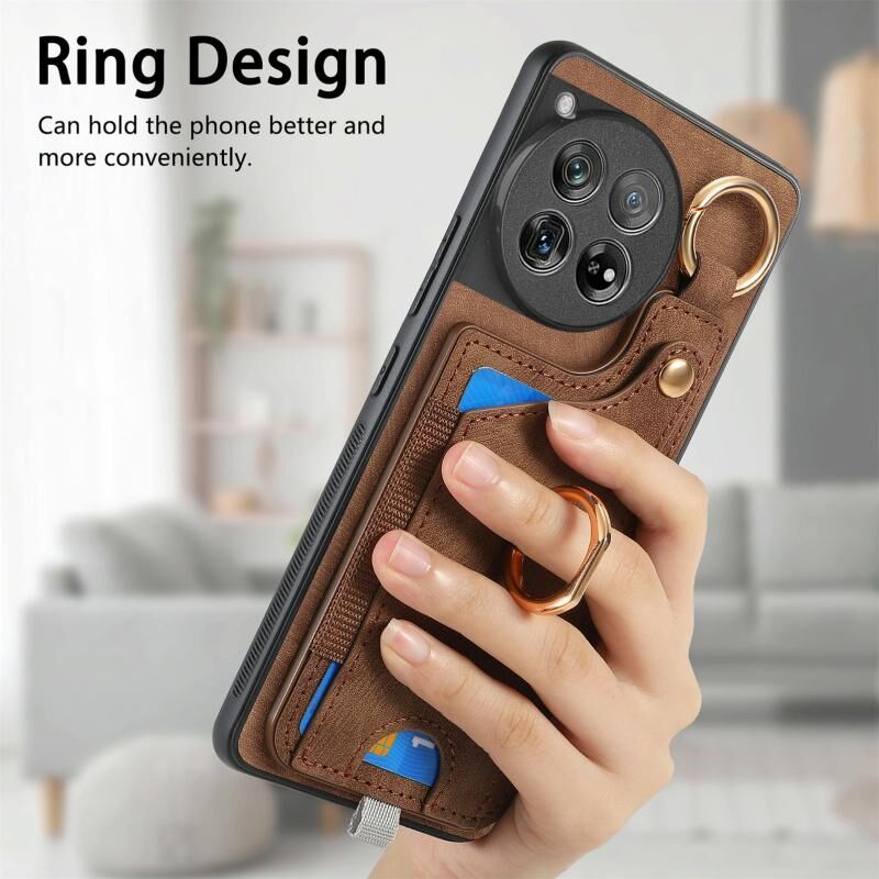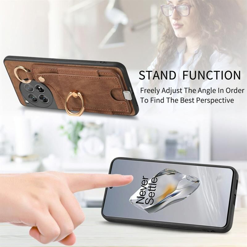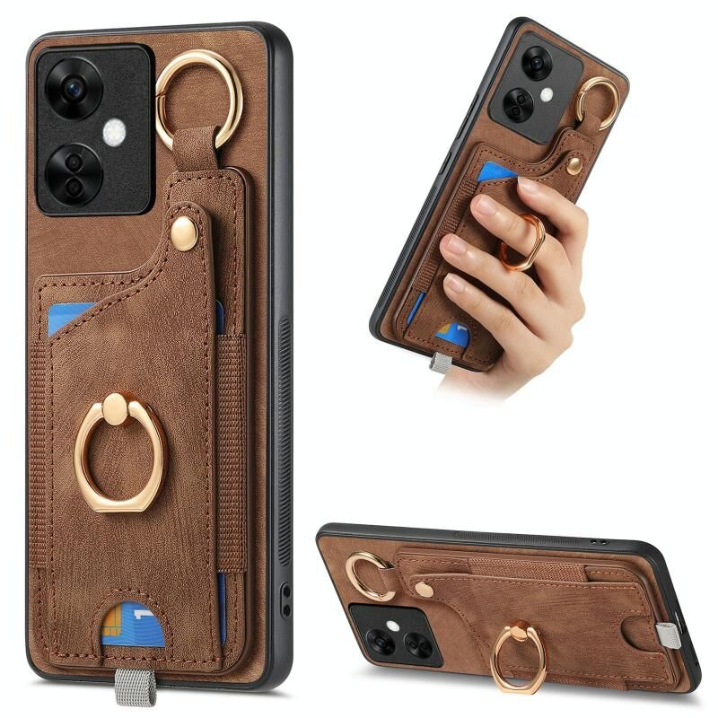 Για OnePlus Nord CE3 Ρετρό δέρμα αίσθηση δαχτυλίδι κάρτα τσάντα υπόθεση τηλεφώνου με Hang Loop (καφέ)