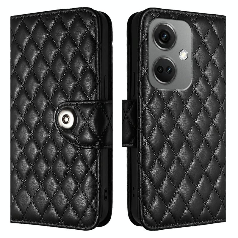 Για OnePlus Nord CE3 Rhombic υφή Flip υπόθεση τηλεφώνου δέρμα με κορδόνι (μαύρο)