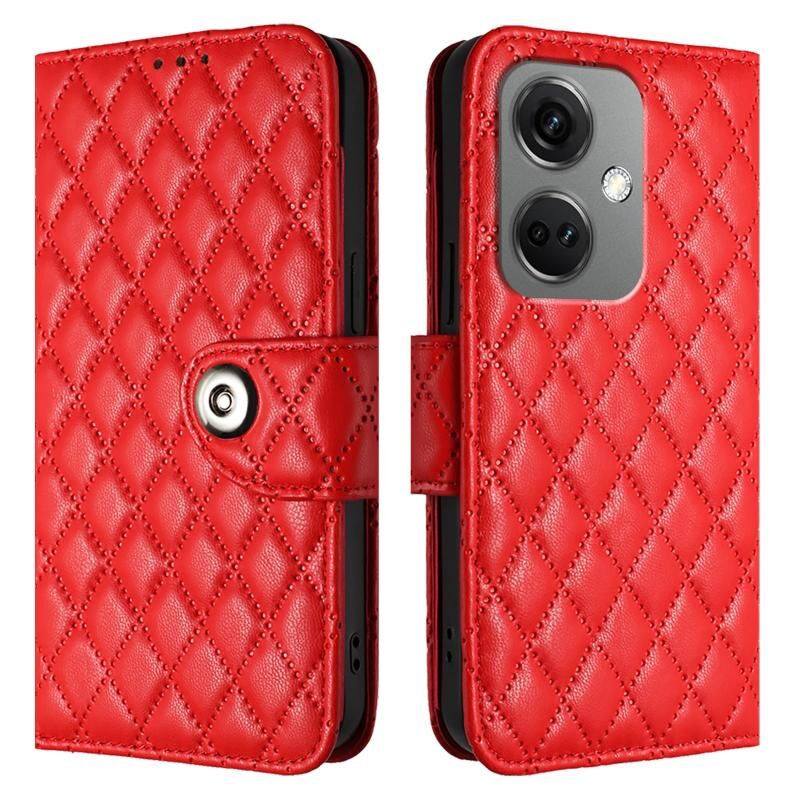 Για OnePlus Nord CE3 Rhombic υφή Flip υπόθεση τηλεφώνου δέρμα με κορδόνι (κόκκινο)