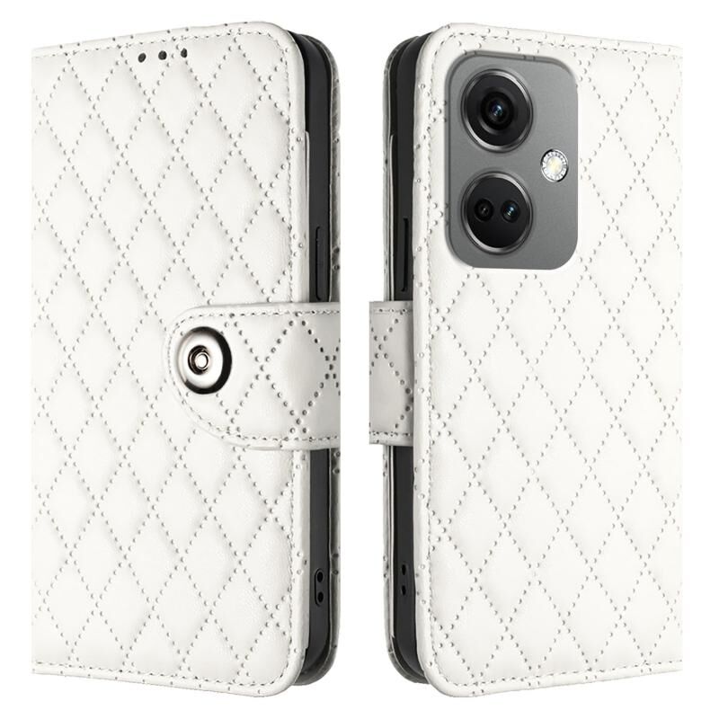 Για OnePlus Nord CE3 Rhombic υφή Flip υπόθεση τηλεφώνου δέρμα με κορδόνι (λευκό)