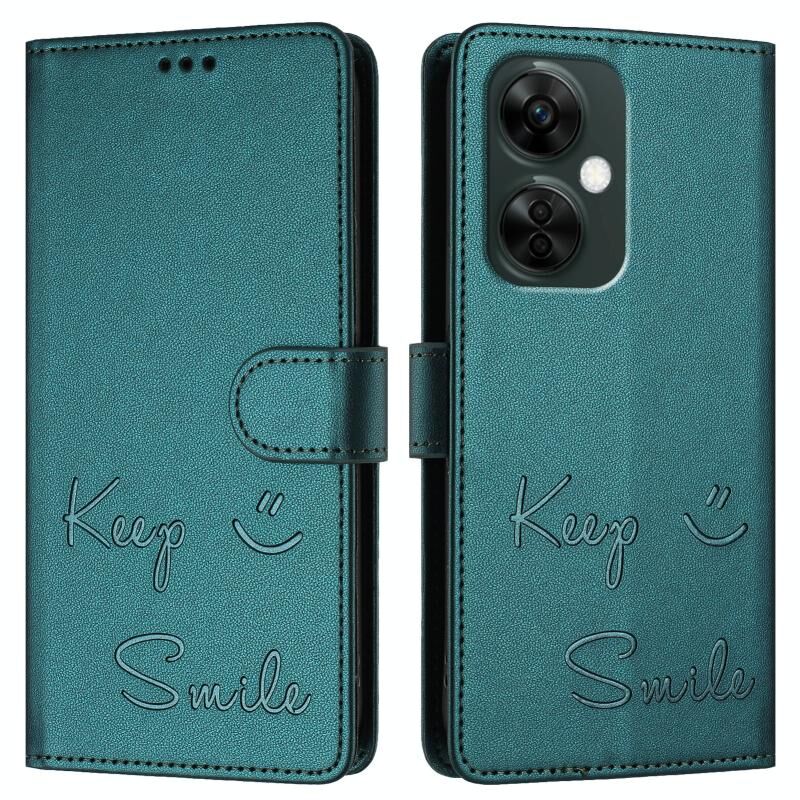 Για OnePlus Nord CE3 Χαμόγελο ανάγλυφο RFID δερμάτινη θήκη τηλεφώνου (Peacock Green)