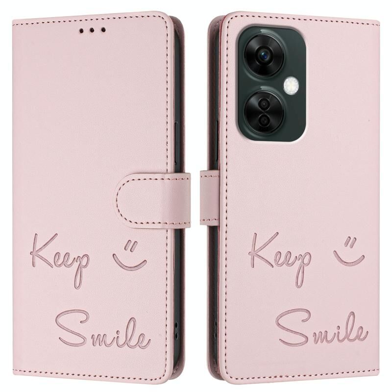 Για OnePlus Nord CE3 Χαμόγελο ανάγλυφο RFID δερμάτινη θήκη τηλεφώνου (ροζ)