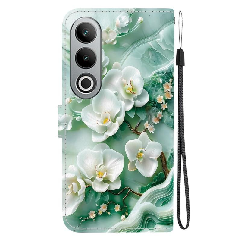 Θήκη τηλεφώνου από δέρμα με πολύχρωμη σχεδίαση κρυστάλλινης υφής για OnePlus Nord CE4 5G (Λουλούδια νεφρίτη)