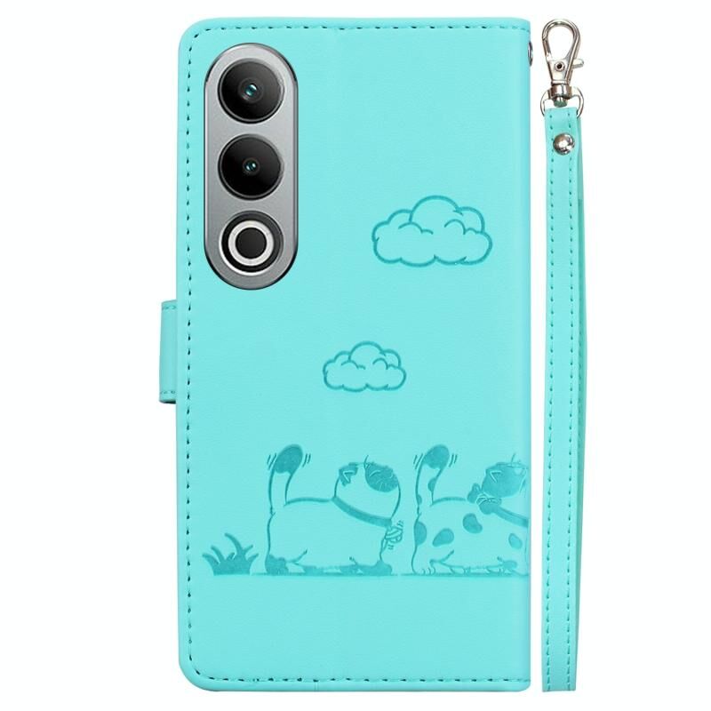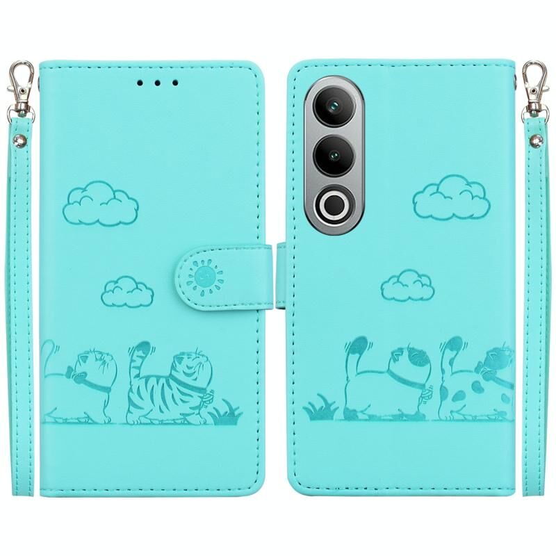 Θήκη τηλεφώνου από δέρμα με χαριτωμένες γάτες και τεχνολογία RFID για OnePlus Nord CE4 5G (Χρυσό Ρόδι)