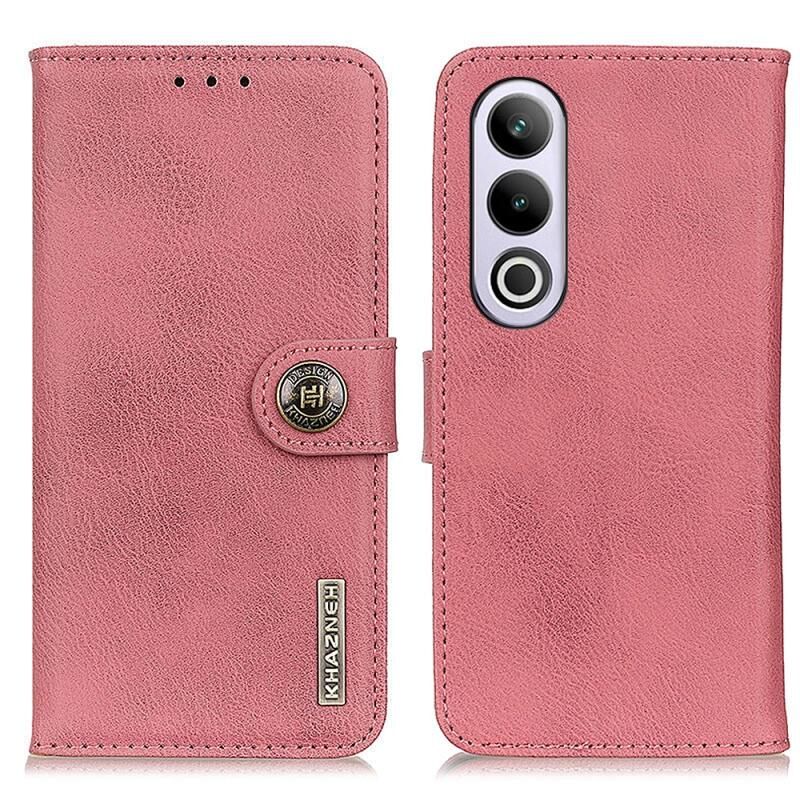 Θήκη τηλεφώνου από δέρμα με υφή δέρματος αγελάδας KHAZNEH, τύπου flip, για OnePlus Nord CE4 5G / K12 5G (Ροζ)