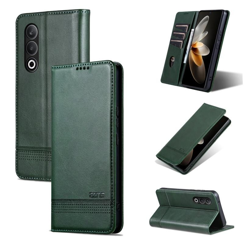 Για OnePlus Nord CE4 AZNS Μαγνητικό μοσχάρι υφή Flip υπόθεση τηλεφώνου δέρμα (σκούρο πράσινο) (AZNS)