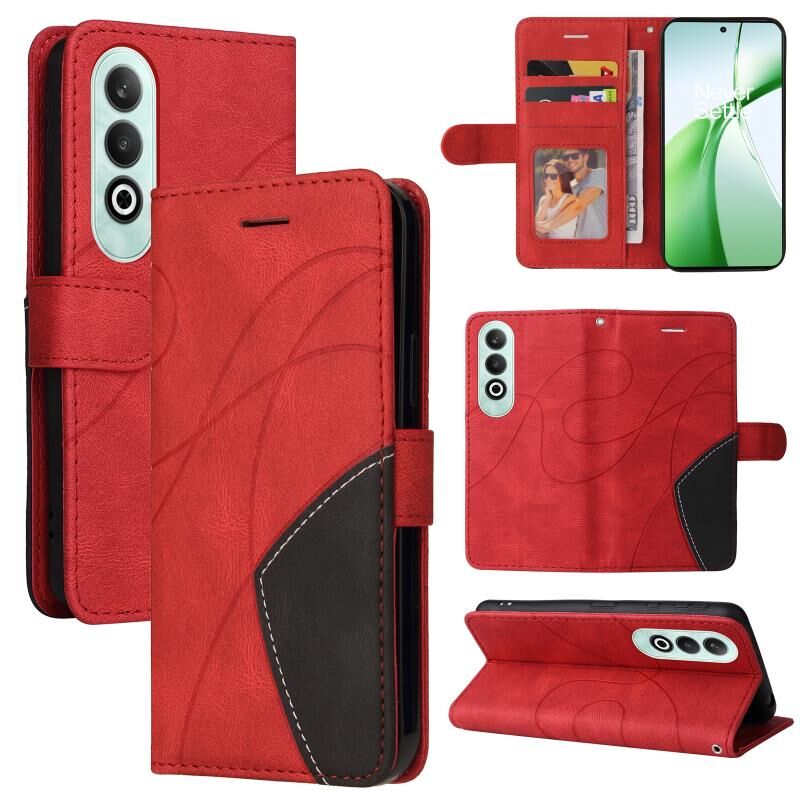 Για OnePlus Nord CE4 Διπλό χρώμα Splicing Flip δέρμα τηλέφωνο υπόθεση (κόκκινο)