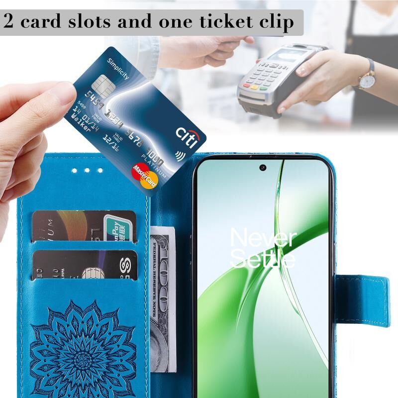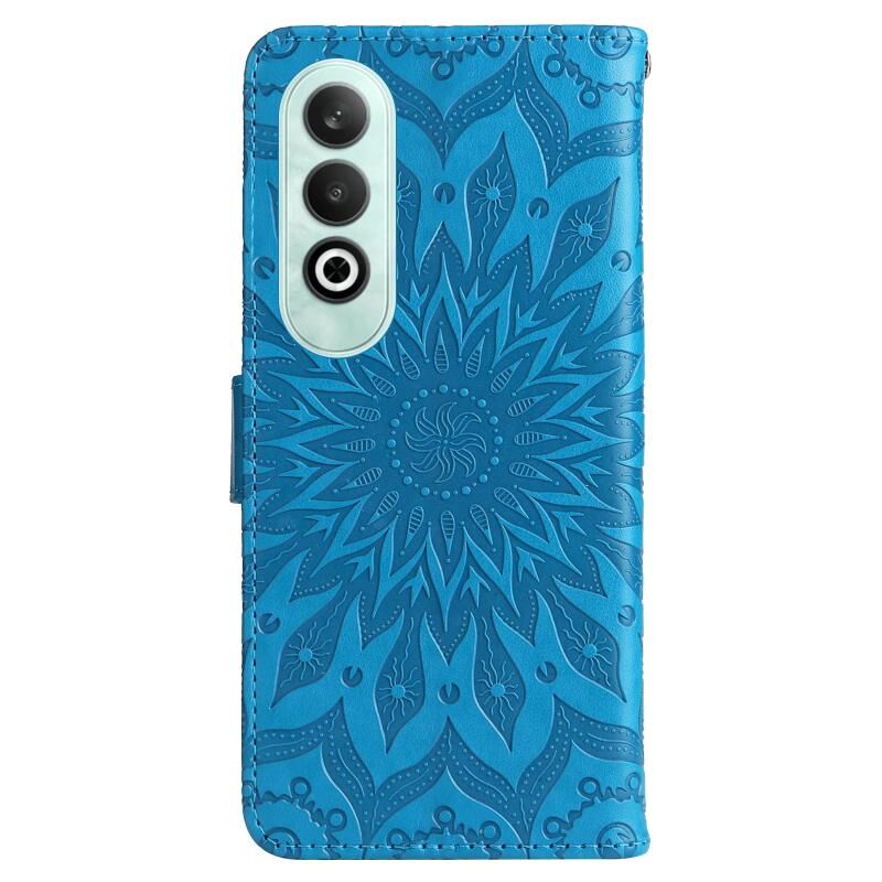 Για OnePlus Nord CE4 ανάγλυφο ηλιοτρόπιο μοτίβο Flip υπόθεση τηλεφώνου δέρμα (μπλε)