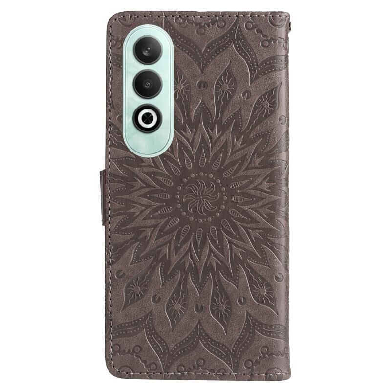 Για OnePlus Nord CE4 ανάγλυφο ηλιοτρόπιο μοτίβο Flip υπόθεση τηλεφώνου δέρμα (γκρι)