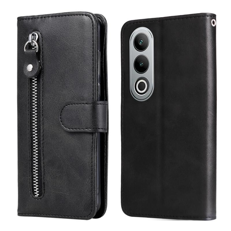 Για OnePlus Nord CE4 Μόδα μοσχάρι υφή φερμουάρ δερμάτινη θήκη τηλεφώνου (μαύρο)