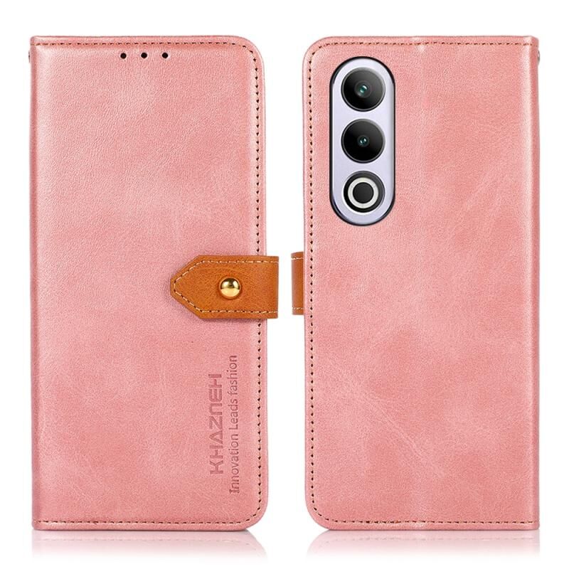 Θήκη τηλεφώνου από δέρμα με υφή δερμάτινου μοσχαριού διπλής απόχρωσης KHAZNEH για OnePlus Nord CE4 Global (Καφέ)