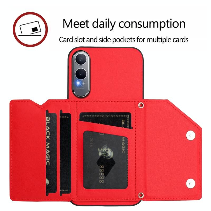 Για OnePlus Nord CE4 Lite 5G Skin Feel Τέσσερις υποδοχές κάρτας υπόθεση τηλεφώνου με λουράκι καρπού (κόκκινο)