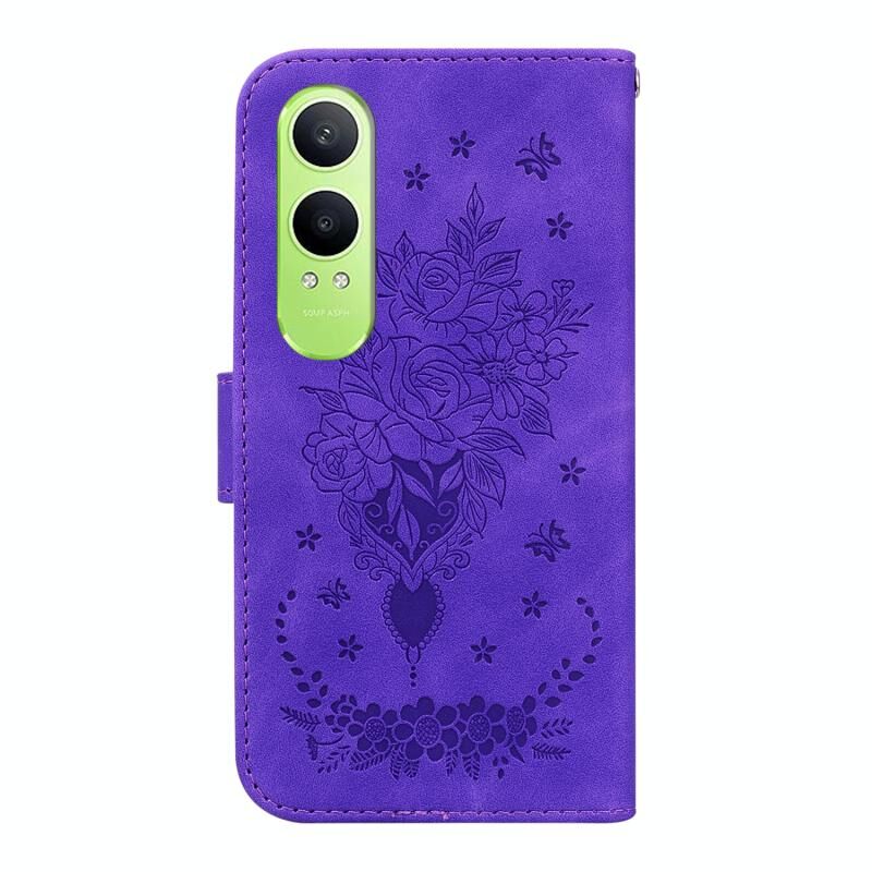 Για OnePlus Nord CE4 Lite πεταλούδα Rose ανάγλυφο δέρμα υπόθεση τηλεφώνου (μωβ)