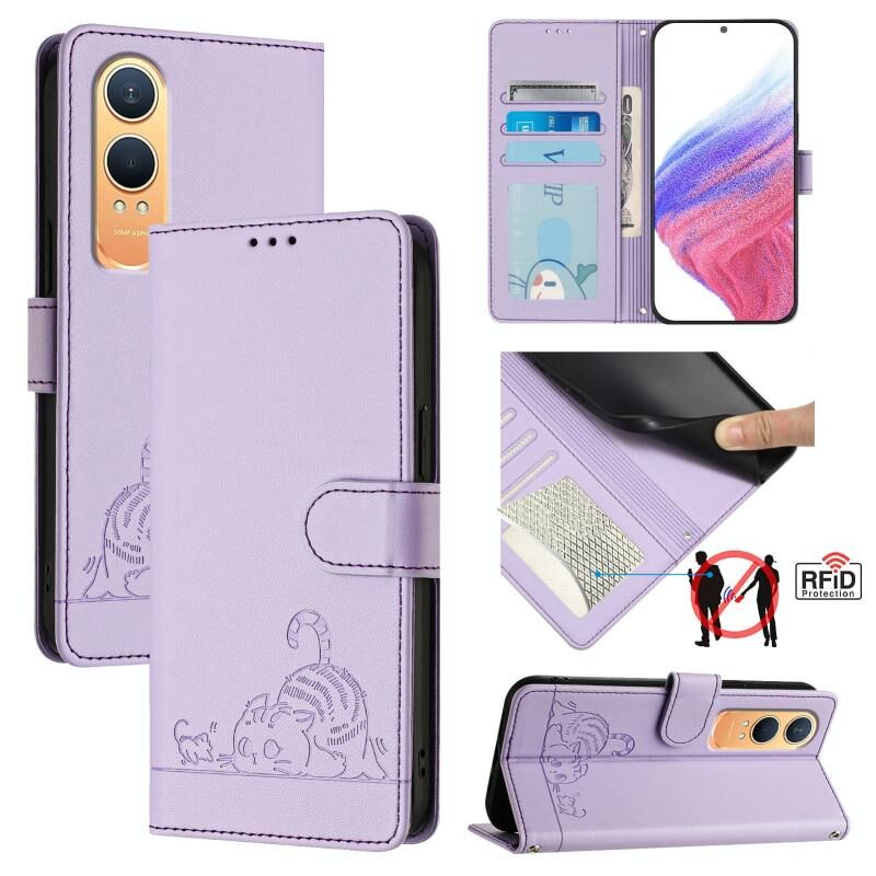 Θήκη τηλεφώνου από δέρμα με ανάγλυφο σχέδιο γάτας και ποντικιού για OnePlus Nord CE4 Lite με κορδόνι (Ροζ)