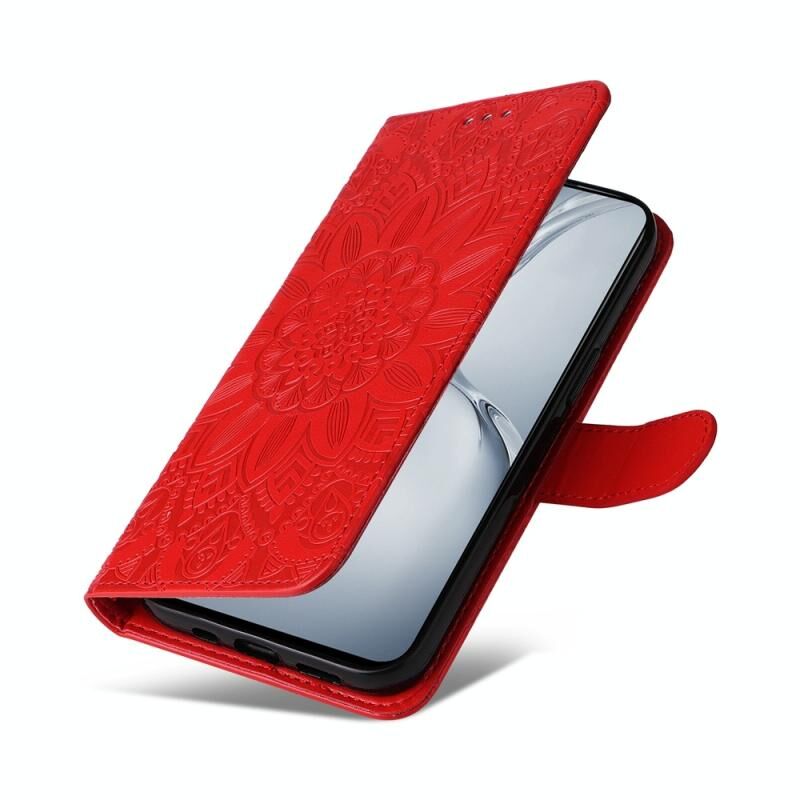 Για OnePlus Nord CE4 Lite ανάγλυφο ηλιοτρόπιο δερμάτινη θήκη τηλεφώνου (κόκκινο)