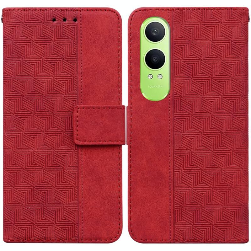 Για OnePlus Nord CE4 Lite γεωμετρική ανάγλυφη δερμάτινη θήκη τηλεφώνου (κόκκινο)