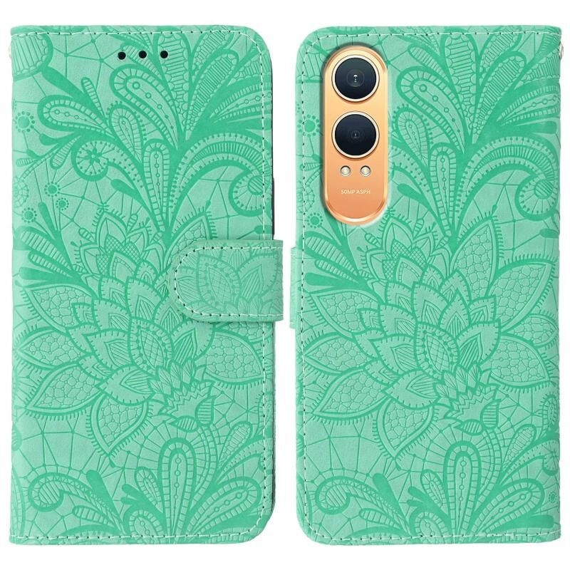 For OnePlus Nord CE4 Lite Global Lace Flower Embossing Flip Leather Phone Case(Green)