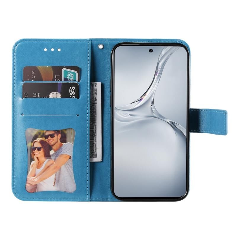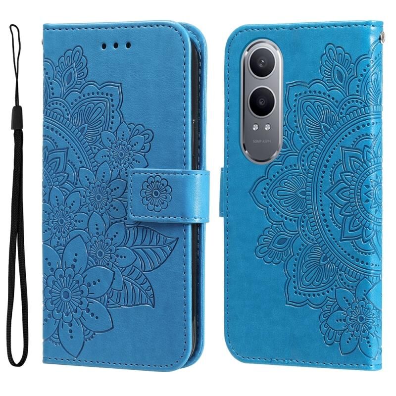 Για OnePlus Nord CE4 Lite Επτά-πέταλο λουλούδια ανάγλυφη δερμάτινη θήκη τηλεφώνου (μπλε)