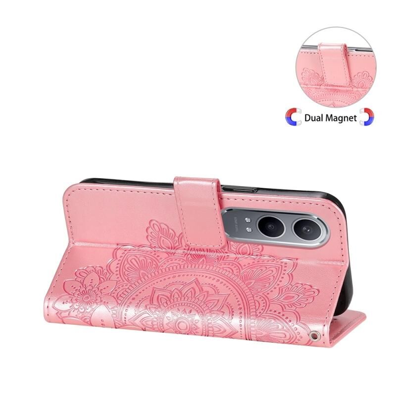 Για OnePlus Nord CE4 Lite Επτά-πέταλο λουλούδια ανάγλυφη δερμάτινη θήκη τηλεφώνου (Rose Gold)